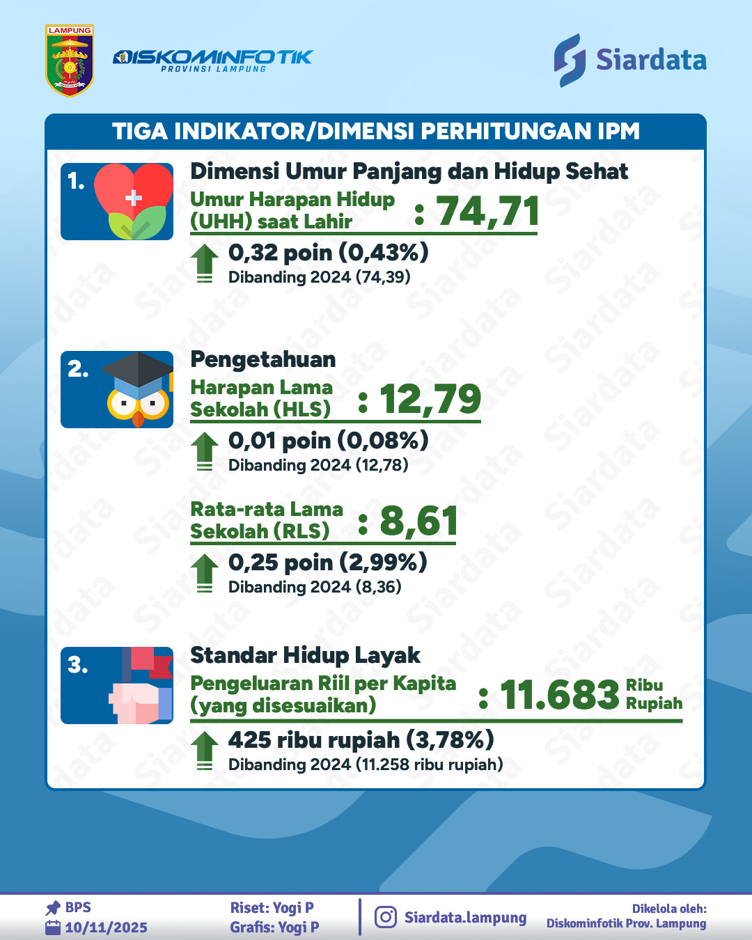 Secara rata-rata, IPM Lampung tumbuh 0,81% per tahun selama 2020–2025, menandakan kemajuan berkelanjutan dalam kualitas hidup masyarakat.