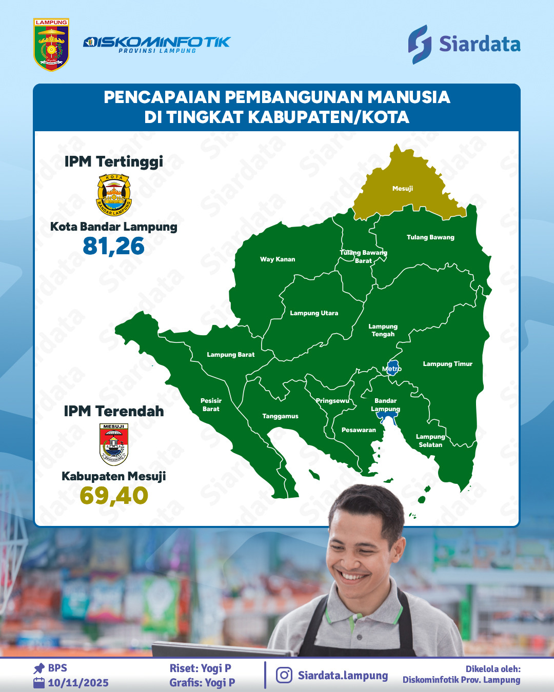 Peningkatan IPM tertinggi dicapai oleh Kota Bandar Lampung (81,26), sedangkan terendah oleh Kabupaten Mesuji (69,40).