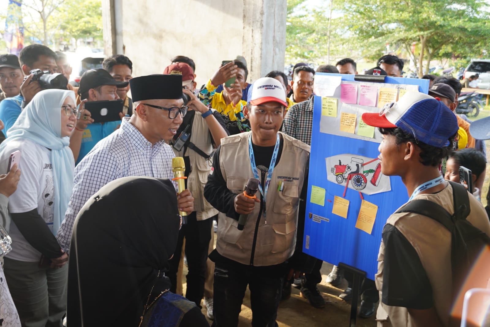 "Tadi saya melihat bagaimana anak-anak muda di desa, yang lulusan SD, yang lulusan SMA, yang lulusan SMP, yang tadinya hanya bisa bertani, sudah bisa mengelas, sudah bisa melakukan inovasi. Nanti ke depan, mau menciptakan, memodifikasi traktor khusus untuk rawa," puji Gubernur.