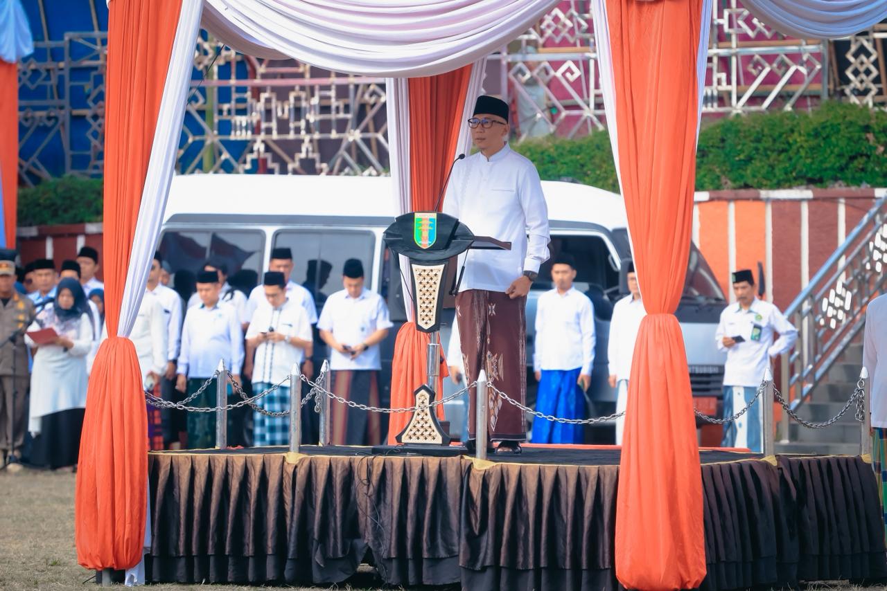Bandar Lampung --- Gubernur Lampung, Rahmat Mirzani Djausal menjadi inspektur upacara pada Peringatan Hari Santri Nasional Tahun 2025 yang mengusung tema "Mengawal Indonesia Merdeka Menuju Peradaban Dunia," bertempat di Lapangan KORPRI, Rabu (22/10/2025).