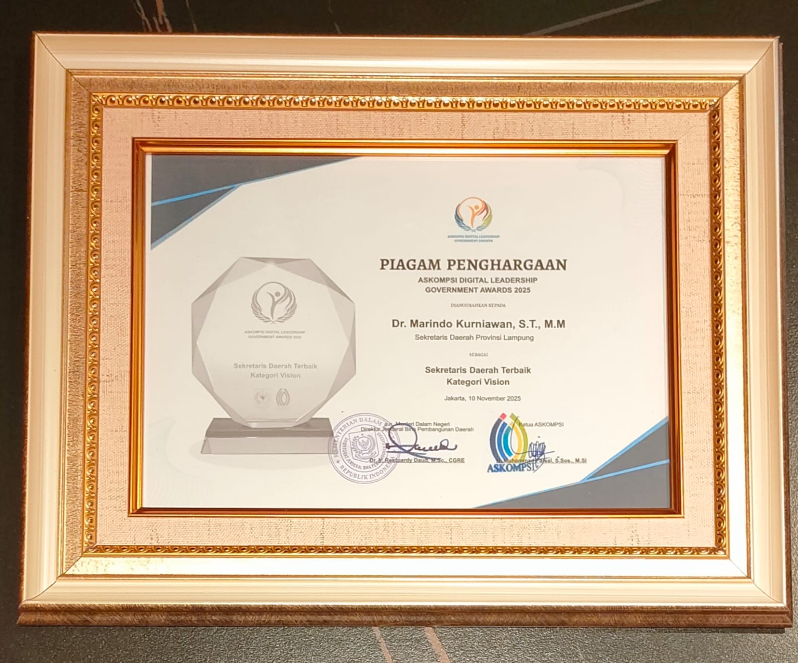 Penghargaan ini menjadi bukti komitmen Sekdaprov Lampung dalam memperkuat tata kelola pemerintahan berbasis digital, mendorong inovasi pelayanan publik, serta menyongsong transformasi digital di lingkungan Pemerintah Provinsi Lampung.